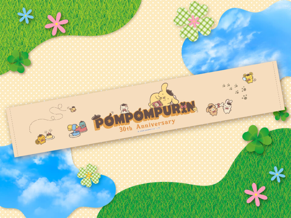 今回は、プリンのデザインが可愛いオリジナルマフラータオル!