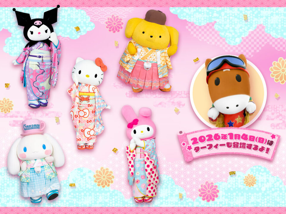 着物を着たキャラクターや、ハローキティとターフィーとのスペシャルなグリーティングもあるよ☆